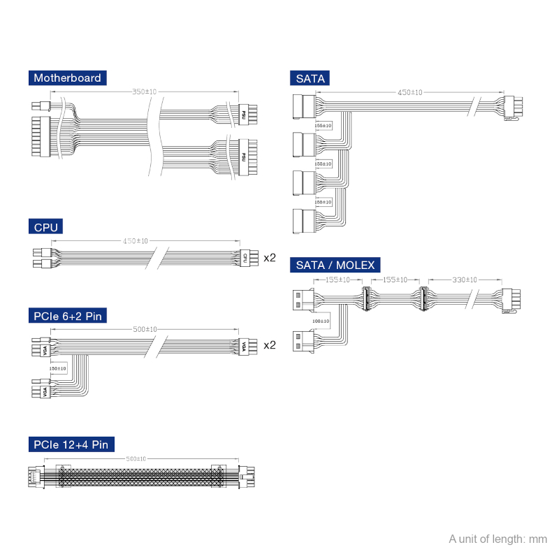 The DAGGER PRO 750W comes with a native PCIe 5.0 connector for the latest graphic cards and features dual CPU power connectors to support high-end motherboards for gaming enthusiasts. The VGA card is a component which needs greedy and stable power support most. The compact-sized DAGGER PRO ATX3.0 750W comes with a single +12V rail design that offers VGA cards full power individually and to avoid any overloading conditions.