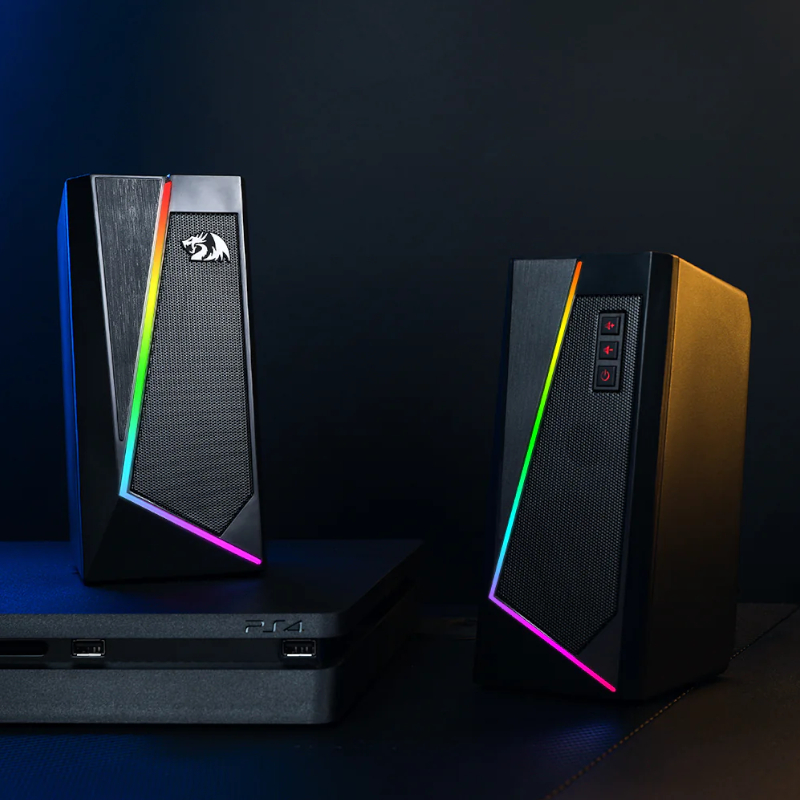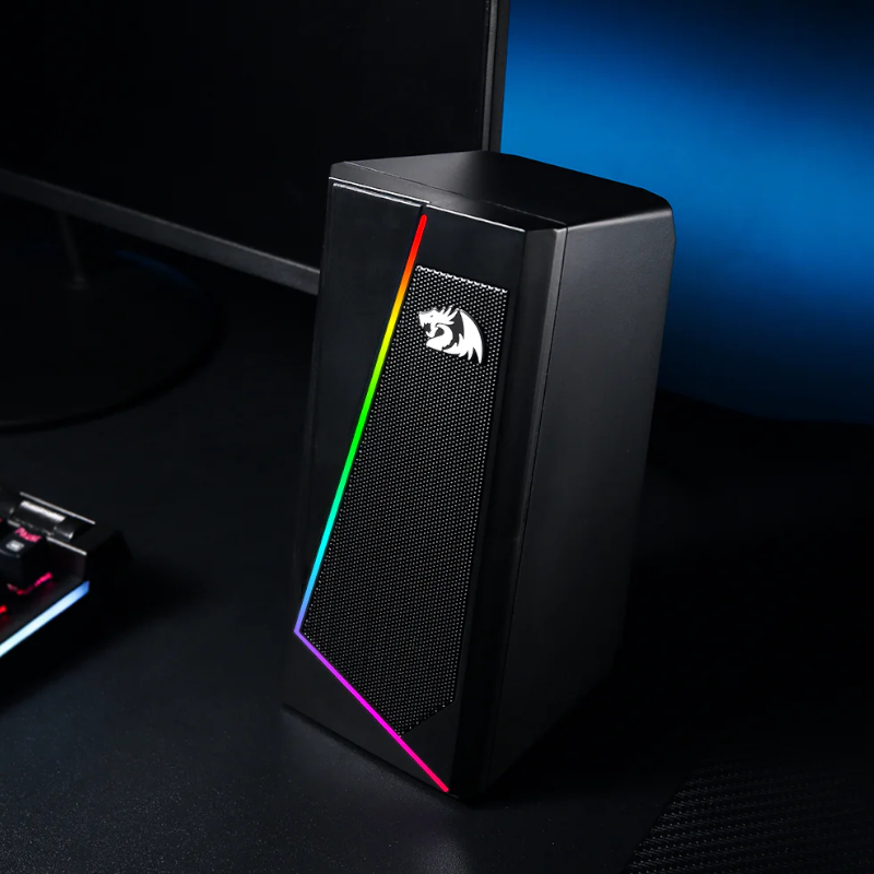 The Redragon GS520 ANVIL 2X3W RGB PC Speakers offers high-quality sound for your desktop or laptop. It features 2 x 3W high-quality speakers with a frequency range of 160Hz~20KHz. The G520S has a premium-looking design thanks to its RGB lighting that feature 8 touch light modes. It also features controls for power on/off and volume control for more convenience. It is powered by a 5V USB interface and can connect to various devices thanks to its 3.5mm audio jack.